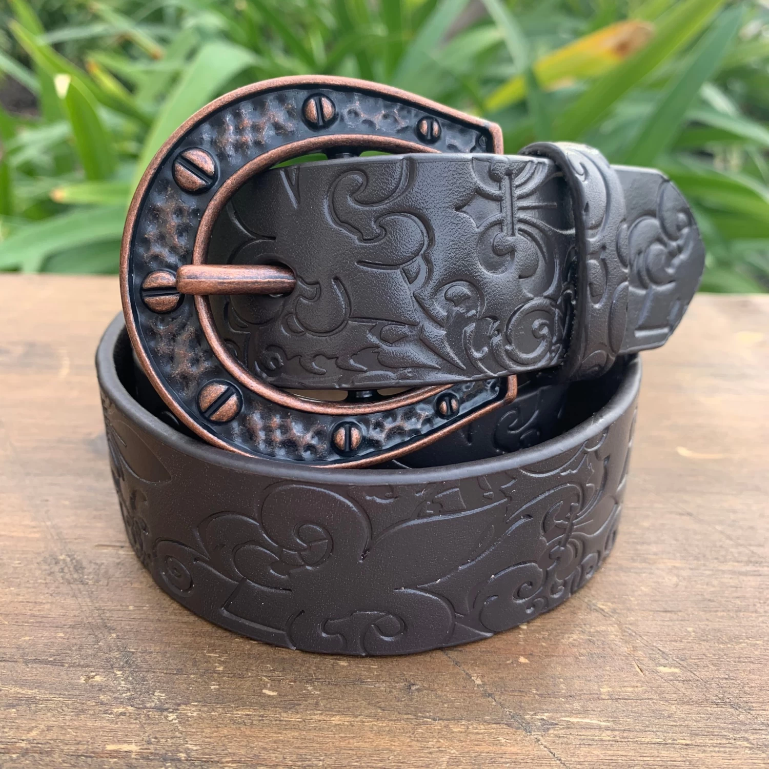 Ariat Women’s Fleur De Lis Horse Shoe Buckle Belt, Brown