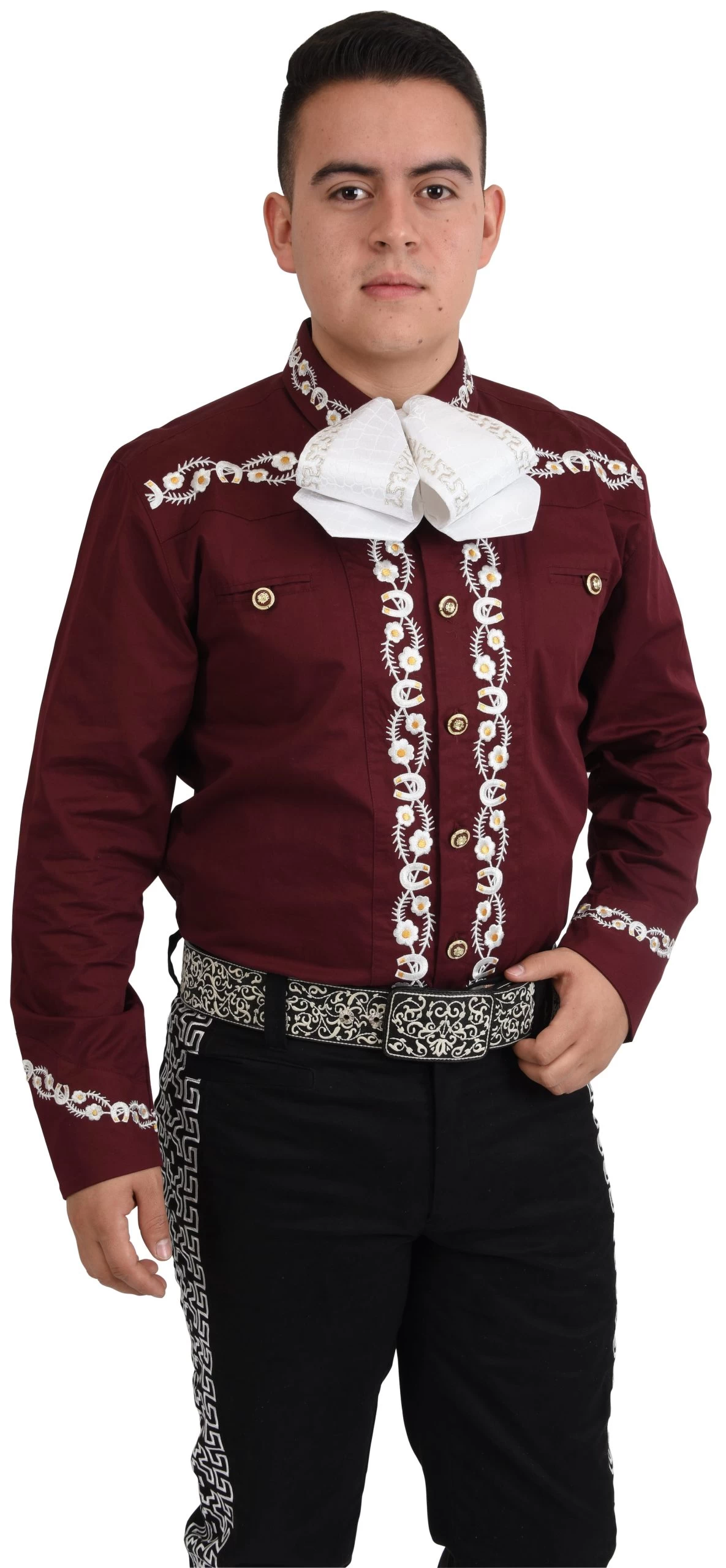 - Color – White Diamond Camisa Charra – Burgundy with White / Vino con Blanco