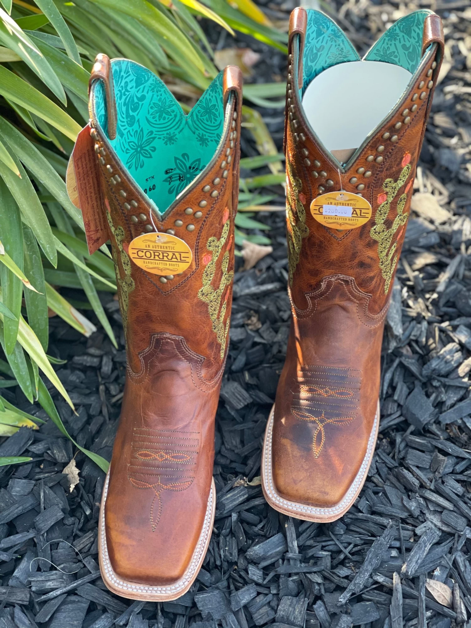 Corral Women’s Embroidery And Studs Western Boot Square Toe