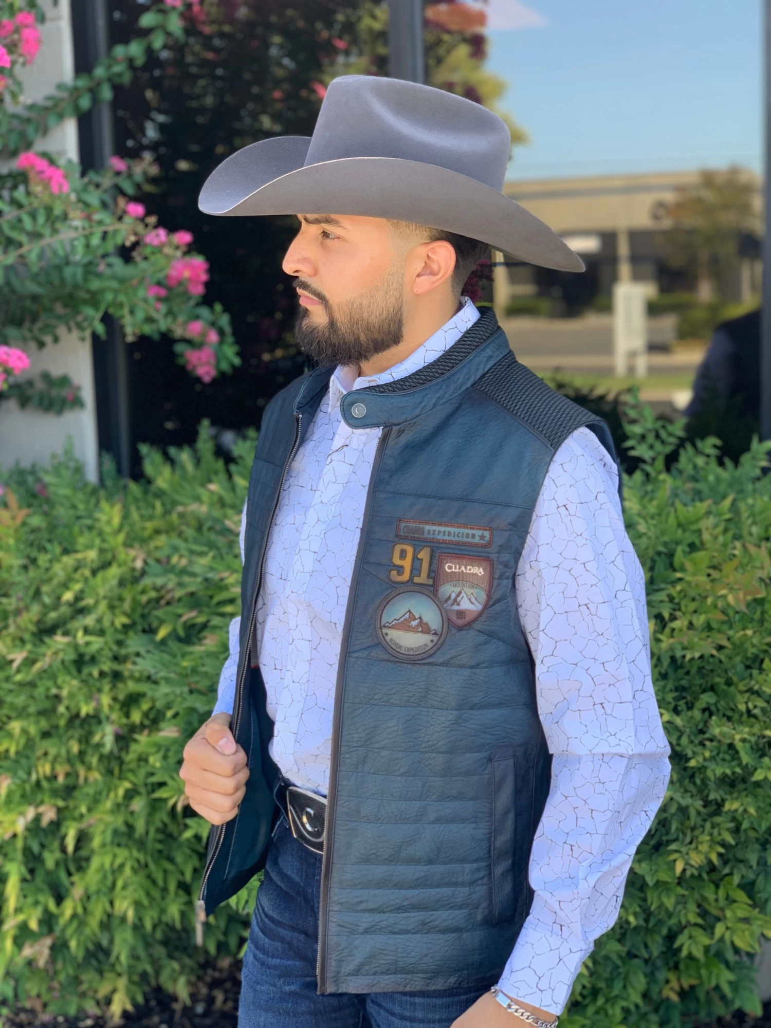 Cuadra Gentleman’s vest in genuine soft lamb leather, upholstery combined with skin shading and contrast.