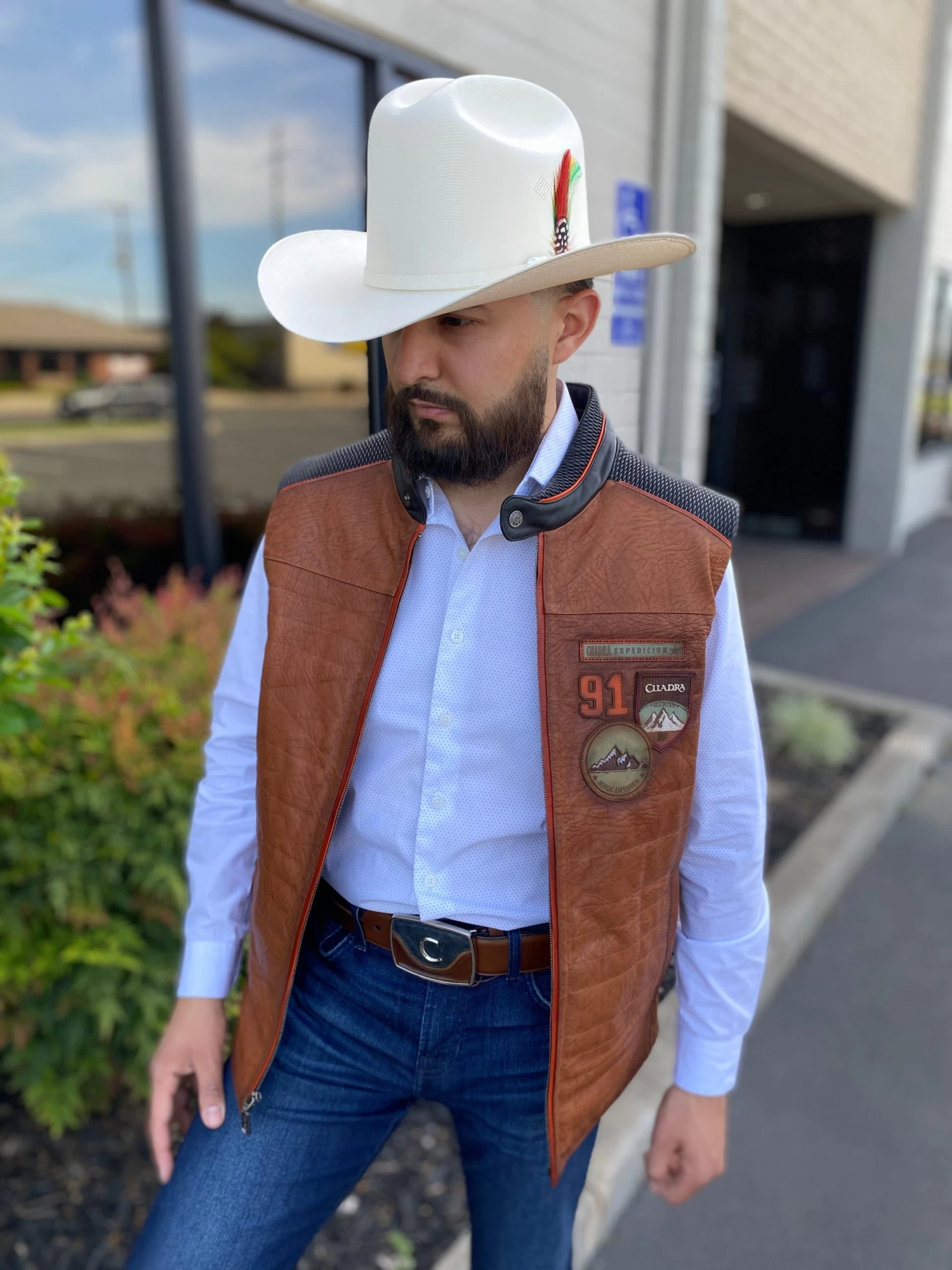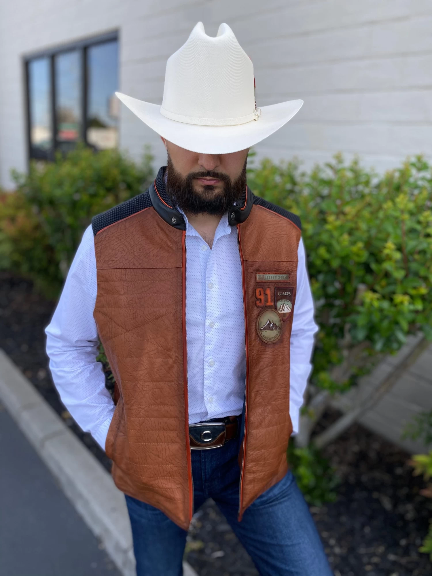 Cuadra Gentleman’s vest in genuine soft lamb leather, upholstery combined with skin shading and contrast.