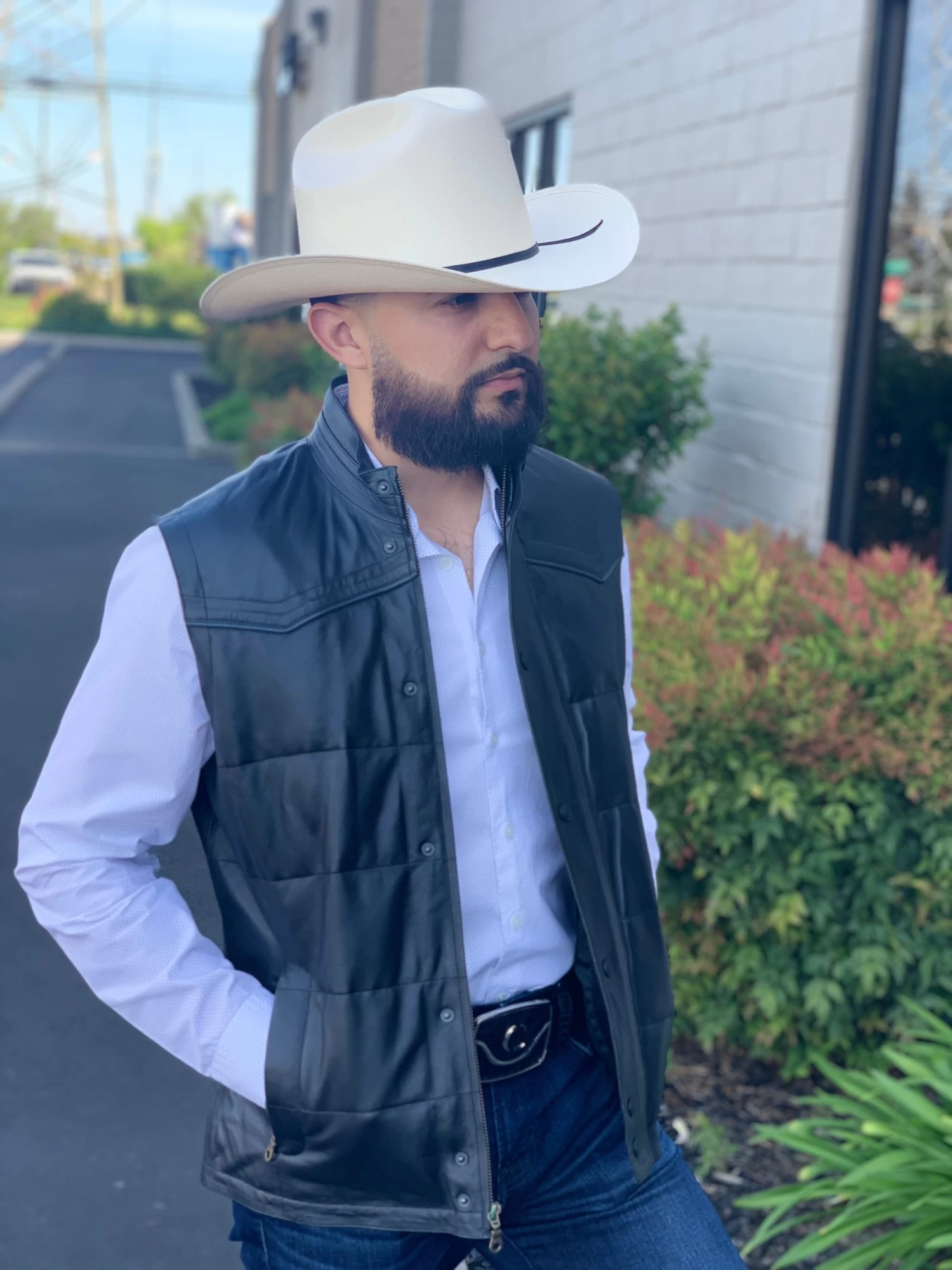 Cuadra Gentleman’s vest in genuine soft lamb leather, upholstery combined with skin shading and contrast.