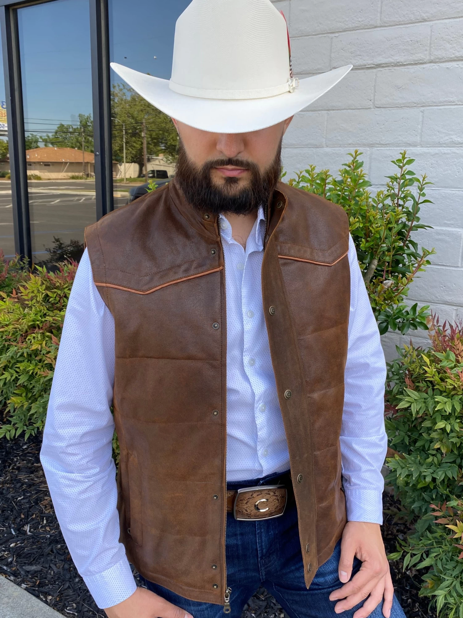 Cuadra Gentleman’s vest in genuine soft lamb leather, upholstery combined with skin shading and contrast.
