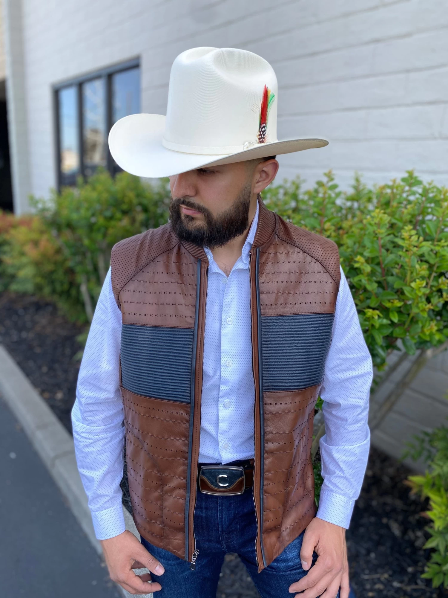 Cuadra Gentleman’s vest in genuine soft lamb leather, upholstery combined with skin shading and contrast.