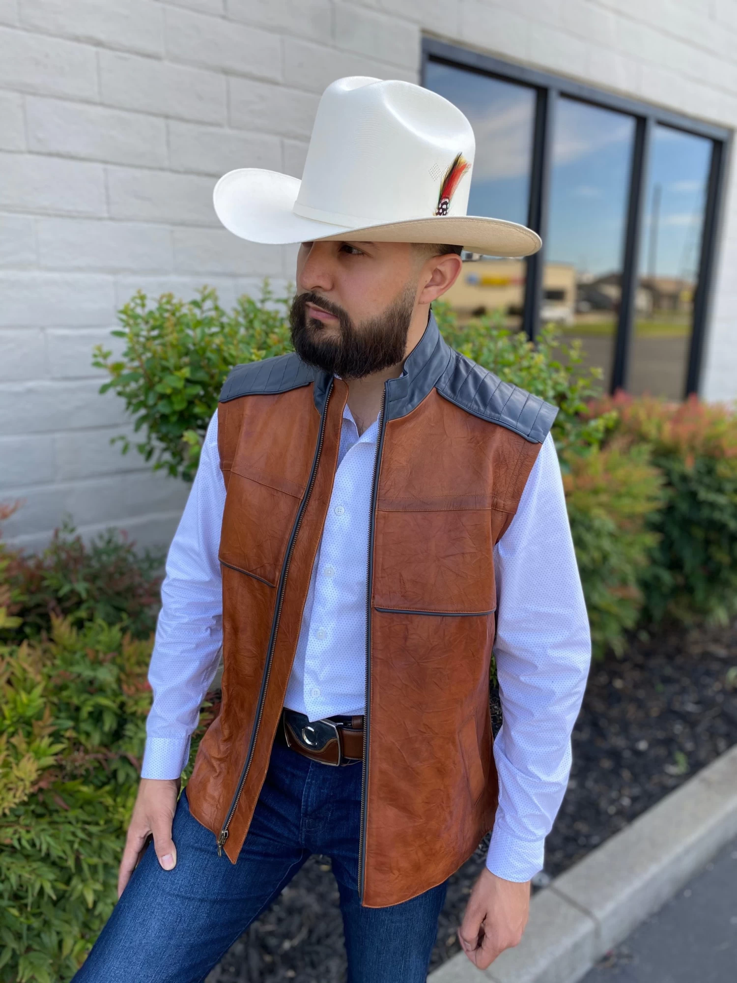 Cuadra Gentleman’s vest in genuine soft lamb leather, upholstery combined with skin shading and contrast.