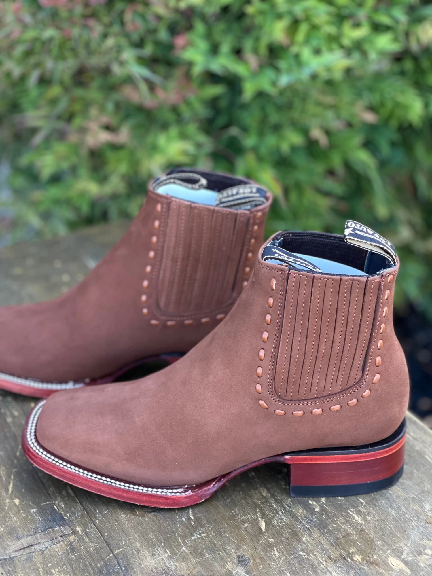 Los Altos Women Wide Square Square Toe Chedron Suede Ankle Boot