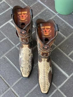 Los Altos Rustic Cognac Python European Square Toe Cowboy Boots