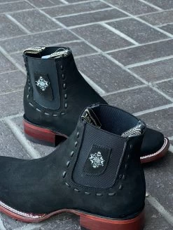 Los Altos Black Caiman Tail & Deer European Square Toe Ankle Boot