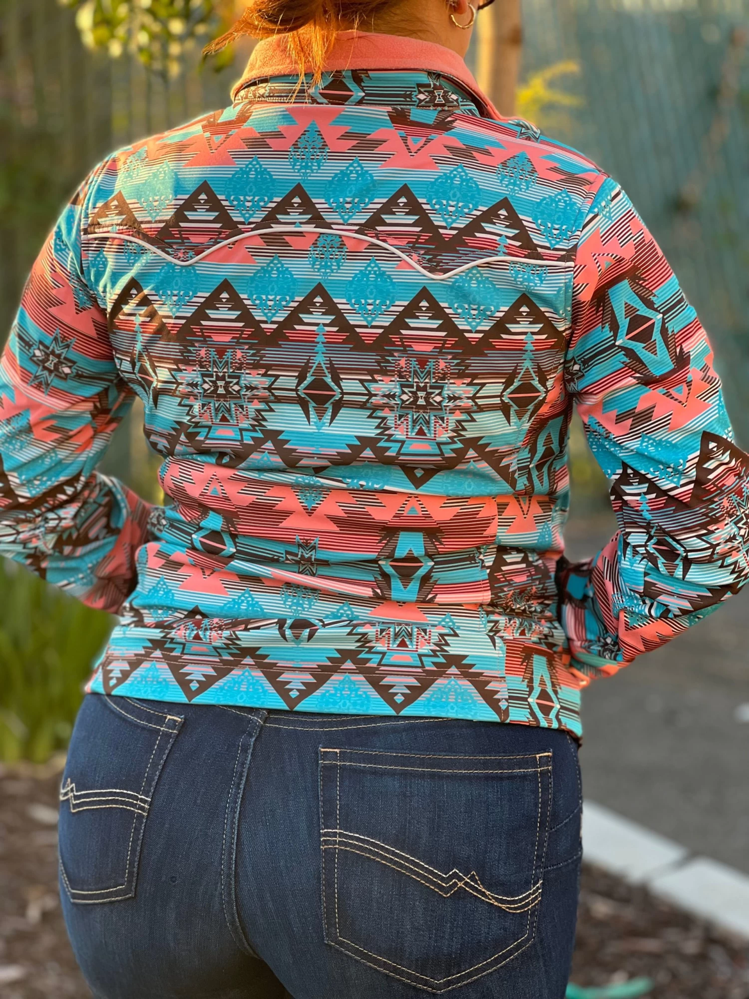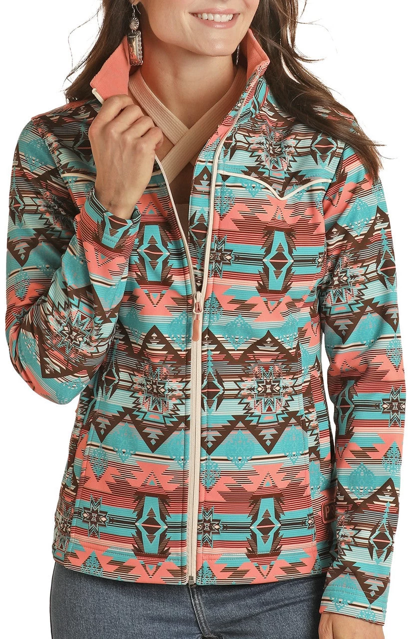 Women’s Turquoise & Pink Aztec Soft-Shell Jacket- Rock&Roll Denim